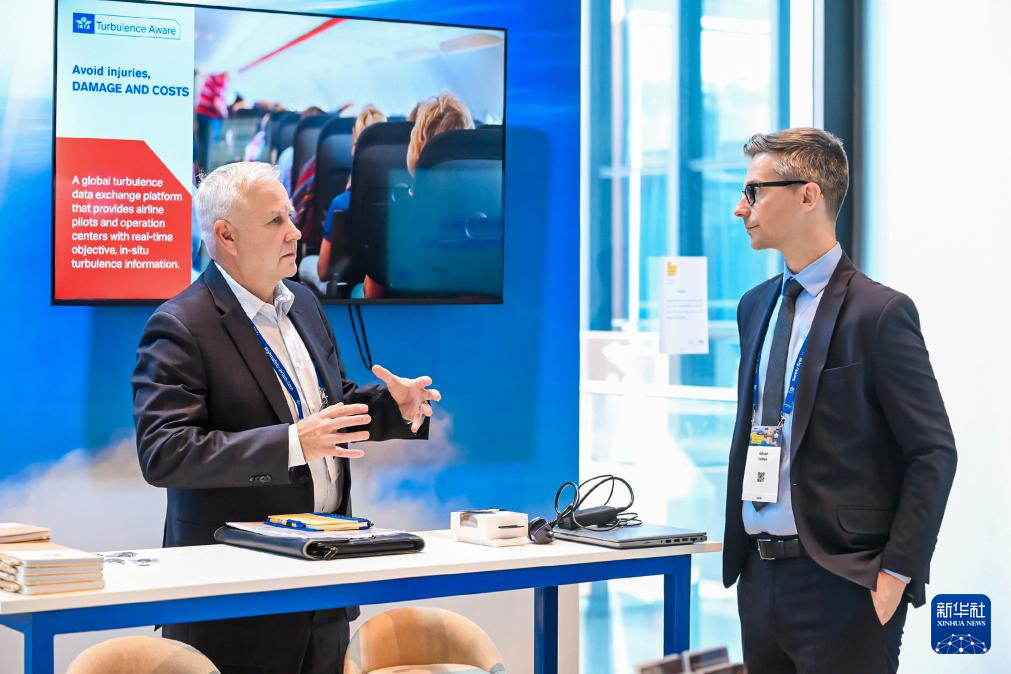 10月14日,外国展商在厦门参加国际航空运输协会2025年世界安全与运行大会。新华社发