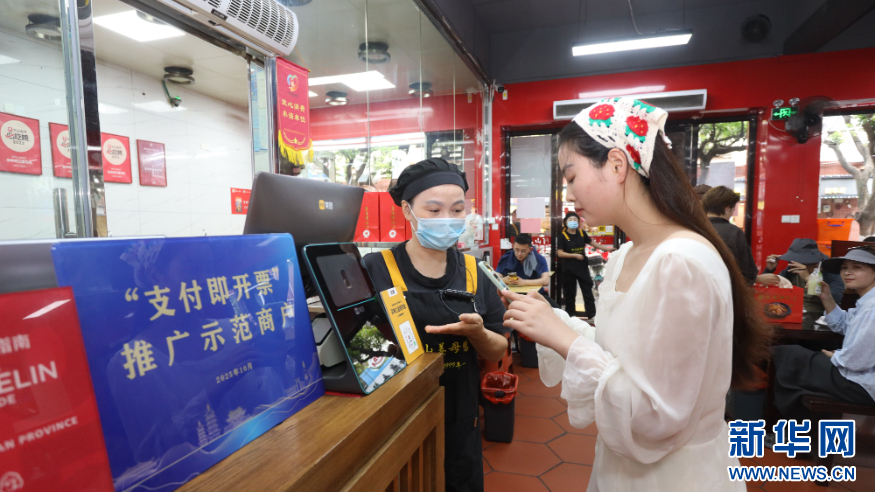 市民群众在“支付即开票”推广示范商户消费。新华网发(连静毅 摄)