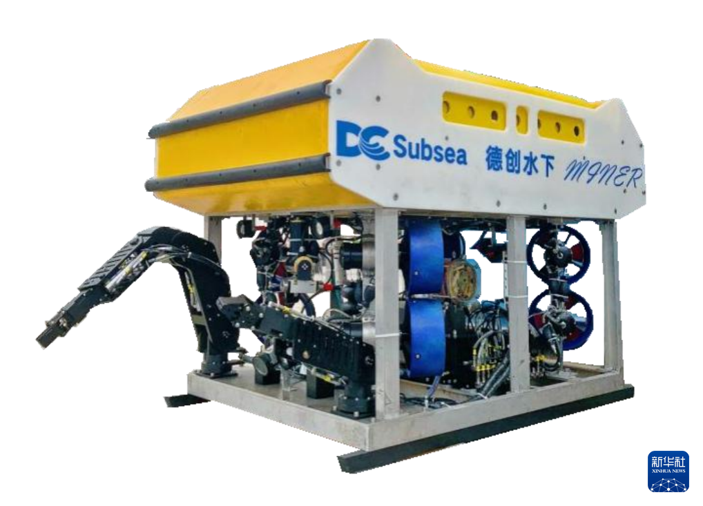 在深圳市德创水下智能装备有限公司展区,记者看到了这款“水下矿工”机器人模型。它的最大作业深度可达2000米,整机功率50千瓦,能在复杂洋流中灵活作业。