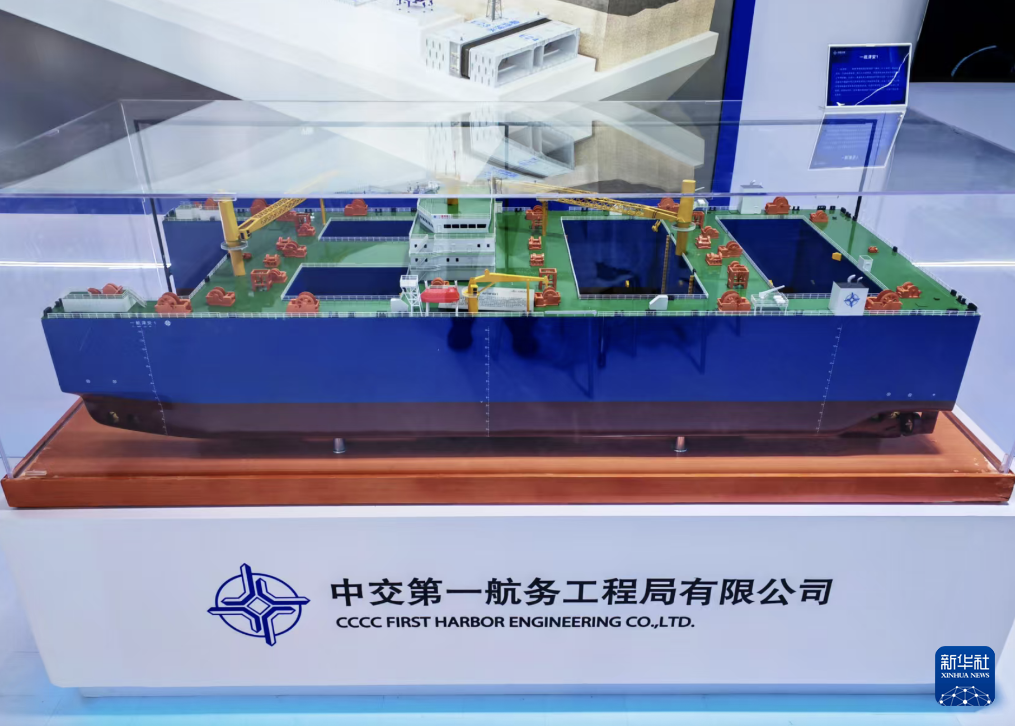 “一航津安1”自航式沉管运输安装一体船模型。新华社记者王聿昊 摄