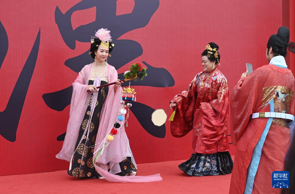 11月15日,汉服爱好者在第十二届中华礼乐大会活动现场拍照。新华社记者 林善传 摄