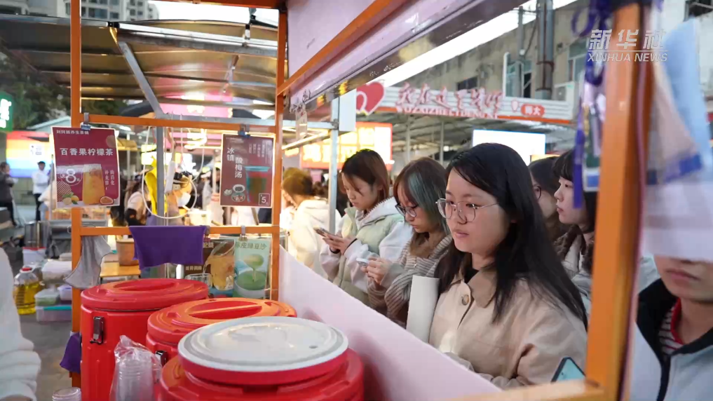12月10日,在福建省福州市,福建师范大学旗山校区附近的小吃街上许多摊位都换上了同一个收款码,摊位前还排起了长队。