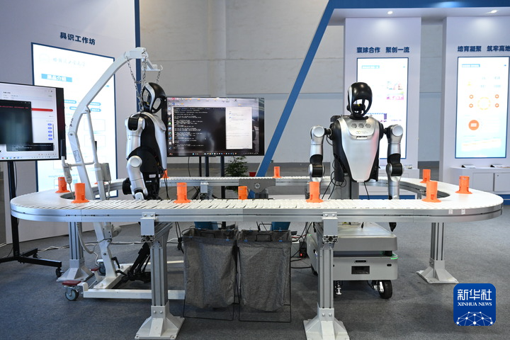 12月1日在“侨智汇”成果发布区拍摄的自动分拣机器人(周义 摄)
