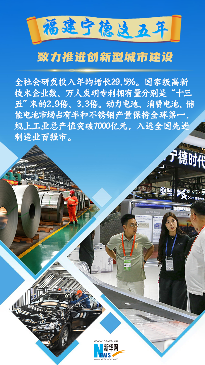 新华网福州12月30日电(蒋巧玲 连雨欣)“十四五”时期,宁德市预计GDP年均增长8%以上,经济总量占全省比重从5.9%提高至6.8%,在全省位次上升至第5位。30日,福建省委宣传部召开“在中国式现代化建设中奋勇争先 奋力谱写新征程新福建建设新篇章”系列主题新闻发布会(第八场),介绍并发布“十四五”时期,宁德市经济社会发展主要成就。